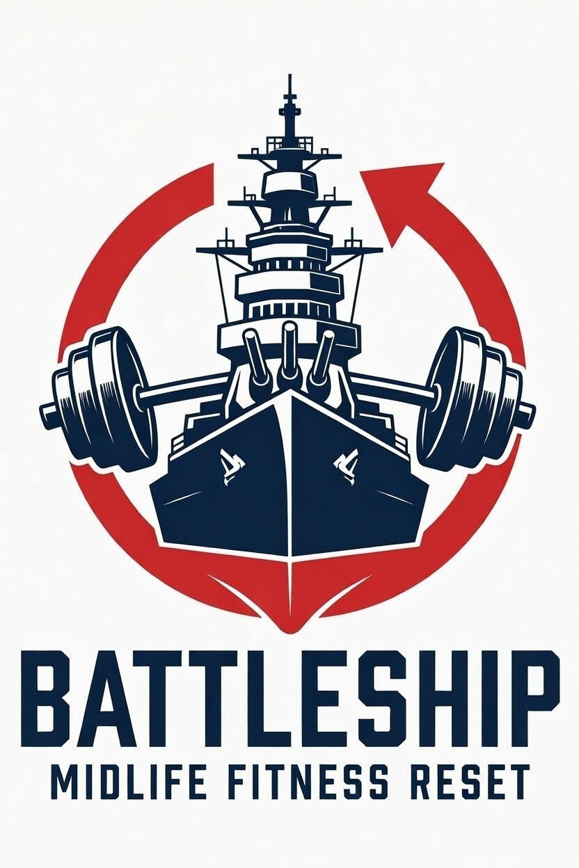 William George Battleship Barratt. Something I did in my 30s on a whim — one of my favourite decisions. Some people love it immediately. Some people get genuinely, physically annoyed by it. Either way, nobody forgets it.It suits what this is. A battleship doesn't drift. It commits to a heading, takes the hits, and keeps moving. That's the only way this works.I was exactly where you are. Biking, hiking, camping — I could keep up with anything. Then I hit my 40s and quietly stopped keeping up. Still told myself I was relatively fit. That was a lie I told myself for years.After my 40th I bought a blood pressure monitor. Mild hypertension. My Apple Watch told me my fitness age was 55. I was in my early forties.August 2024: a holiday photo of me getting out of the pool. I looked at it and thought: I'm a fat bastard. That was it. The final wake-up call.I didn't hire a PT. I didn't join an expensive gym. I started walking — 20km every single day, without fail. Stopped drinking. Ate sensibly because I didn't want to undo the walks. Five months later I added gym work at lunchtime.Five months of walking. Four months of gym. That was the entire formula.Blood pressure: back to normal. Fitness age: 17. All the excess weight gone. Energy back. Showing up properly for my kids, my wife, my mates.I work in technology. I love systems, tracking, and iterating. I built Battleship because I know the formula works — and because I know exactly how it feels to be where you are right now.